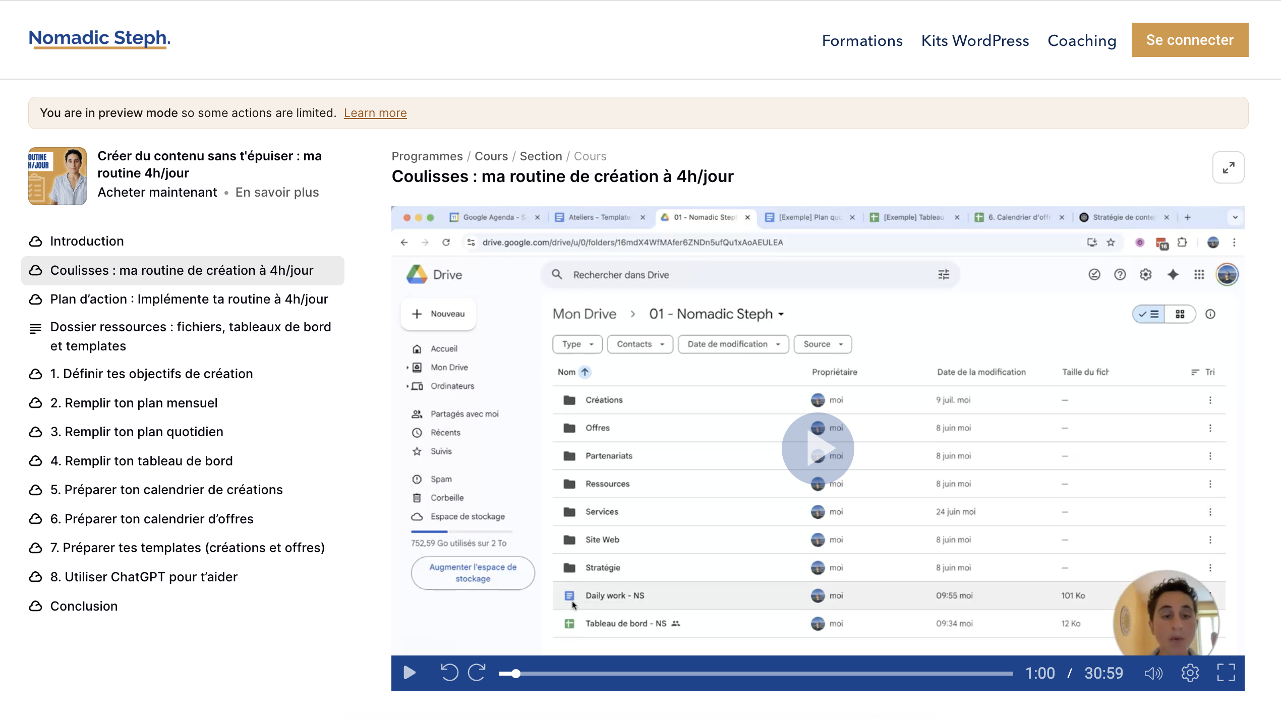 Je t’ouvre les portes de mon Google Drive, je te montre mes vrais fichiers, mes vrais tableaux, mon agenda, mon plan quotidien, et même comment je les utilise concrètement au jour le jour.